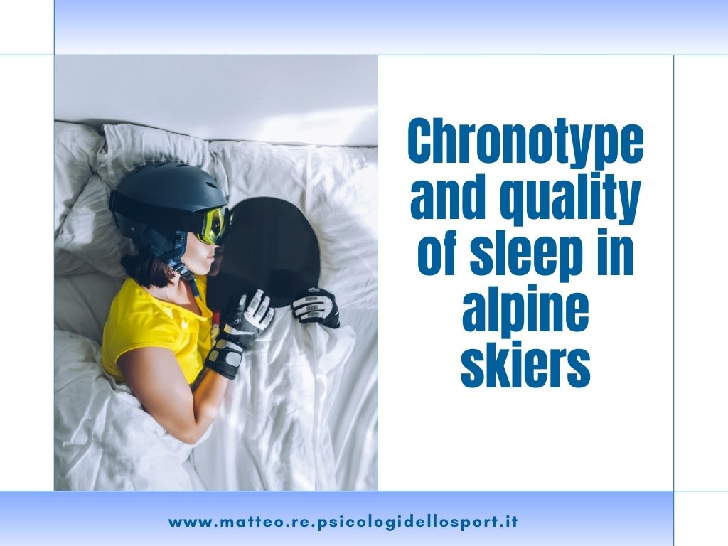 Alpine skiing is among the most physically and cognitively demanding sporting activity, pushing the athletes to the limits, both mentally and physically, due to the high speed, the ability to swiftly turn between the gates, the necessity to memorize the course that changes from one competition to the next, and also between the first and the second run of a same competition. Besides, athletes need to adapt quickly to changing snow and/ or weather conditions. The time gap between the participants in an international competition is measured in hundredths of a second, and the athletes’ performance is compressed into a few seconds. So far it has been neglected in scientific research and this is the first study that focuses on alpine skiers, focusing on their chronotype and sleep.